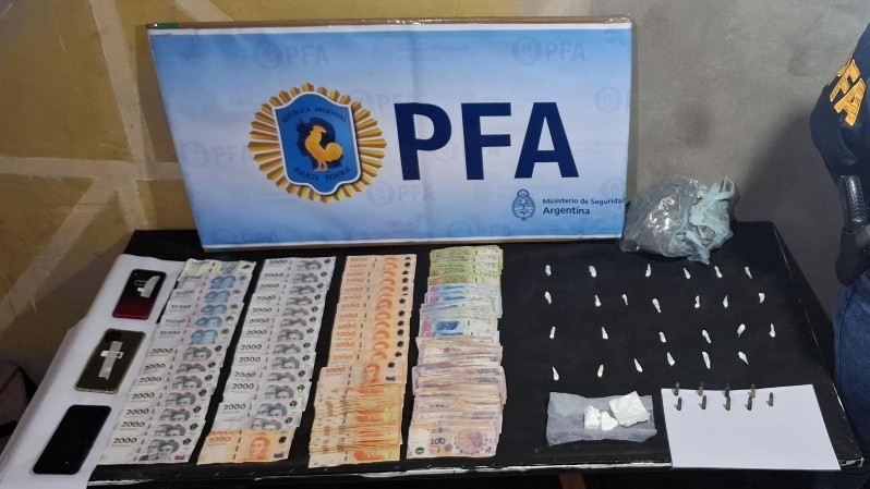 Se secuestraron importantes cantidades de clorhidrato de cocaína (en piedras y fraccionada), marihuana en distintas formas (cogollos, flores y hojas), un pistolón calibre 12/70, municiones calibre 32, cuchillos, balanzas de precisión y otros elementos utilizados para el fraccionamiento y venta de la droga. También se incautaron teléfonos celulares que serán peritados.