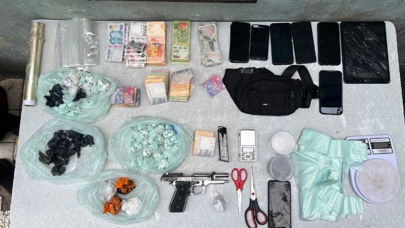 El procedimiento se inició cuando los agentes intentaron identificar a tres sospechosos en un pasillo de casas. En una propiedad lindera, incautaron una pistola calibre 9 milímetros, 500 mil pesos, una gran cantidad de estupefacientes fraccionado para la venta y elementos para embalar.
