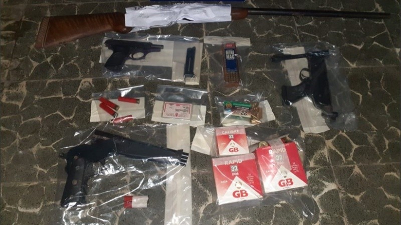 También una escopeta, un pistolón, una pistola de aire comprimido y varios cartuchos.