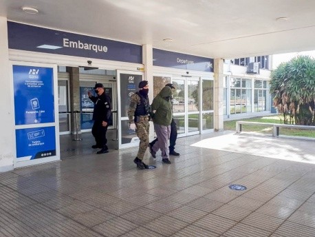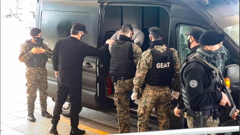 Los policías Rodolfo M., Adrián F., Rodrigo G. y Walter A. fueron arrestados este jueves por personal de la Policía de Seguridad Aeroportuaria (PSA) en las localidades de Álvarez, San Lorenzo, Helvecia y la ciudad de Santa Fe. Los celulares de los sospechosos fueron secuestrados y serán enviados a peritar.