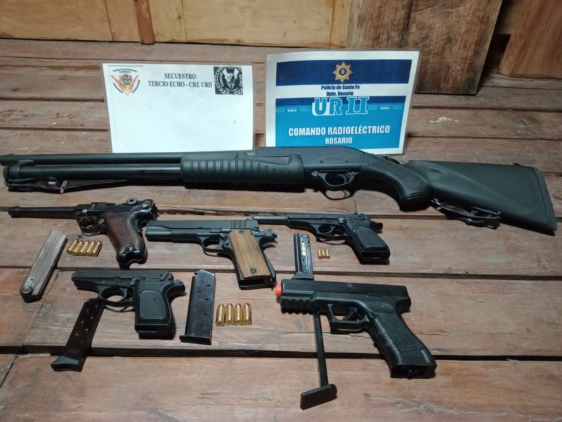 La policía informó además el secuestro de vainas servidas y seis armas en el procedimiento: una escopeta y cinco pistolas.
