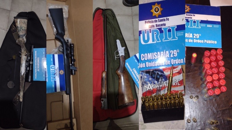En las viviendas se secuestraron escopetas, carabinas, partes de un aire comprimido y cajas de cartuchos calibre 12, 22 y 308, más vainas servidas.
