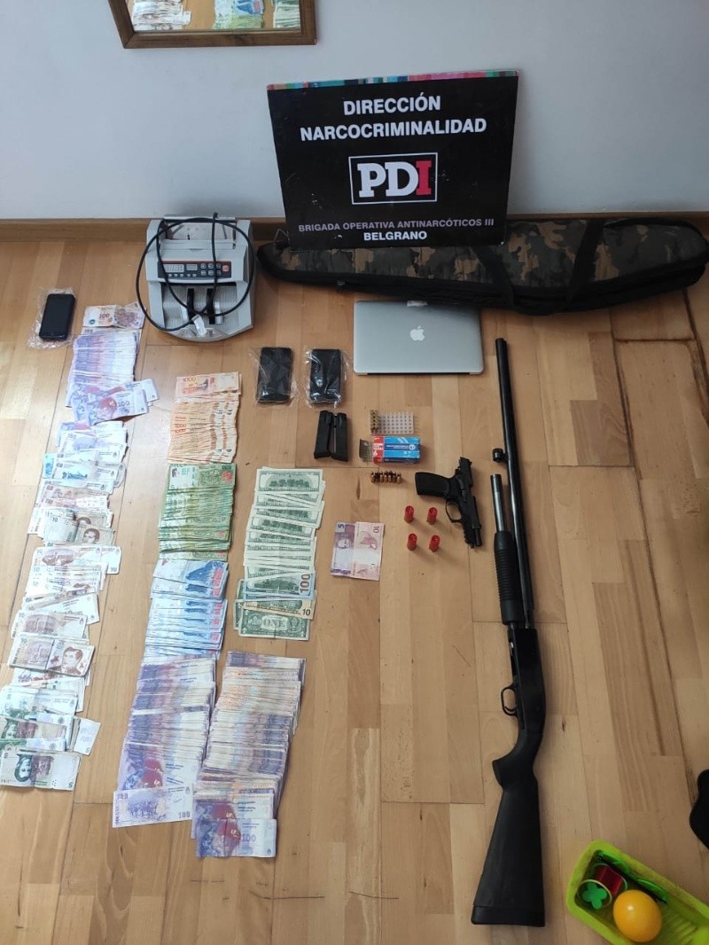 En las mansiones de los líderes de la organización hallaron además 42.513 dólares, marihuana, cocaína y una balanza de precisión.