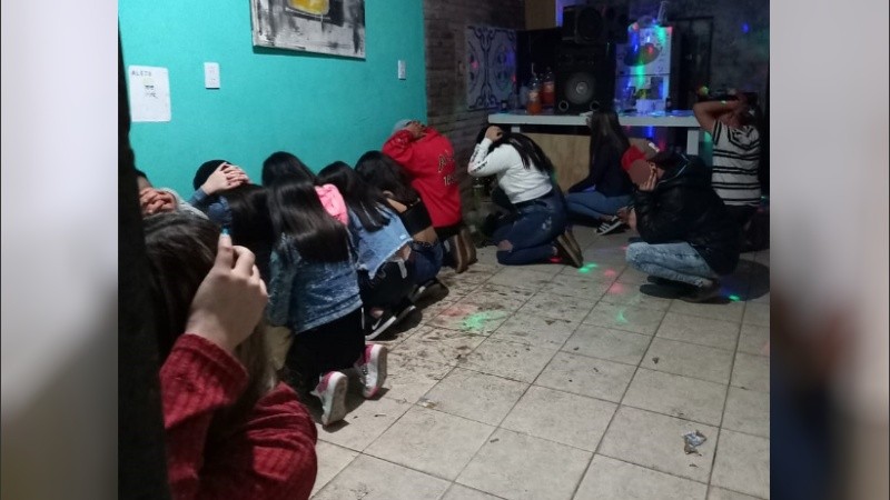 En esa casa de Villa Gobernador Gálvez fueron demorados seis mayores de edad identificados como Silvia F.; Yanina F.; Enzo G.; Ángel D.; Juliana B.; y José S.; y quince menores de edad.