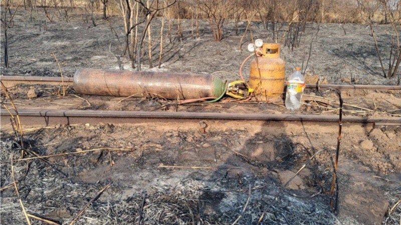 Al llegar los policías advirtieron un auto rojo y unas 20 personas que, a modo de cuadrilla de trabajo, extraían los rieles, los que a su vez eran cortados con sopletes y acondicionados para el transporte.