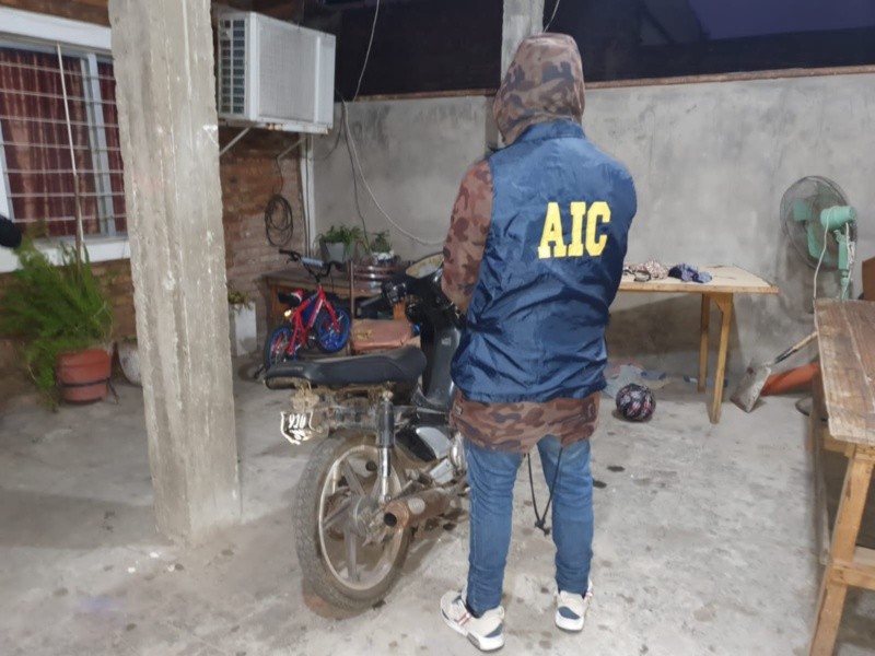 Se secuestraron celulares, una moto negra señalada en la causa, chalecos simples de policías y una munición de 9mm.