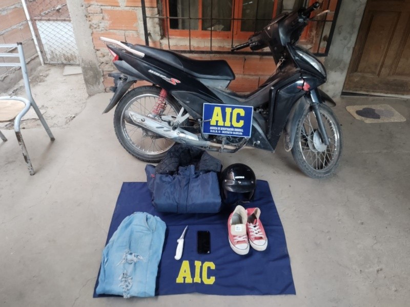 El procedimiento de este martes fue ordenado por la fiscal Marianela Luna. La funcionaria indicó a persona de la Agencia de Investigación Criminal (AIC) el allanamiento en una vivienda de Pasaje Tomas Thomas de Carcarañá donde secuestraron una motocicleta Honda Wave, un casco, una cuchilla tipo carnicero y varias prendas de vestir.