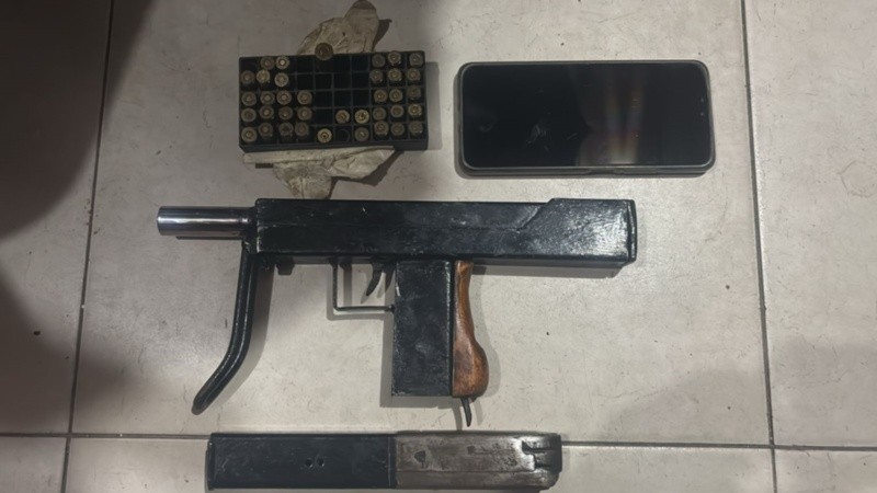 Un joven de 29 años fue aprehendido en la tarde de este lunes en Pasaje Cristal al 6900, en el barrio Tío Rolo, después de haber sido denunciado por su padre. El Comando Radioeléctrico le encontró una ametralladora de fabricación casera y secuestró cartuchos de distintos calibres y vainas servidas.