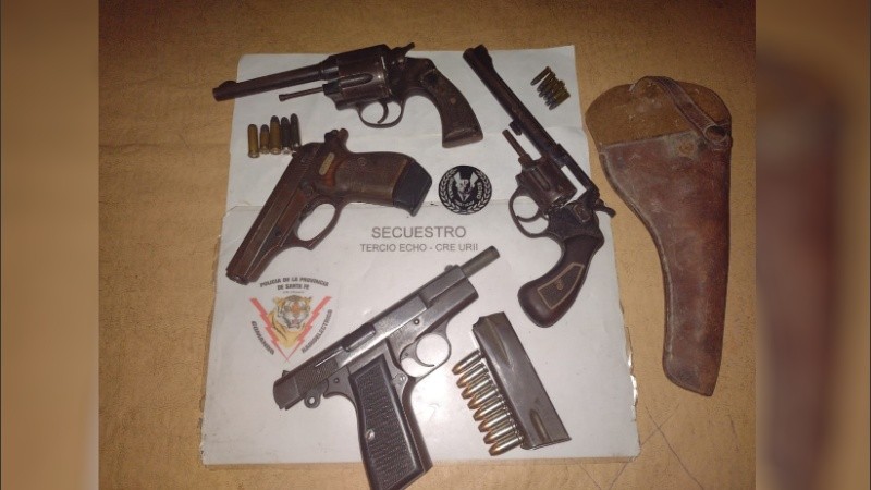 El total del material incautaro fue una pistola calibre 9 milímetros, una Bersa calibre 7.65, un revólver calibre 38 special y otro calibre 22 largo. También se secuestraron municiones.