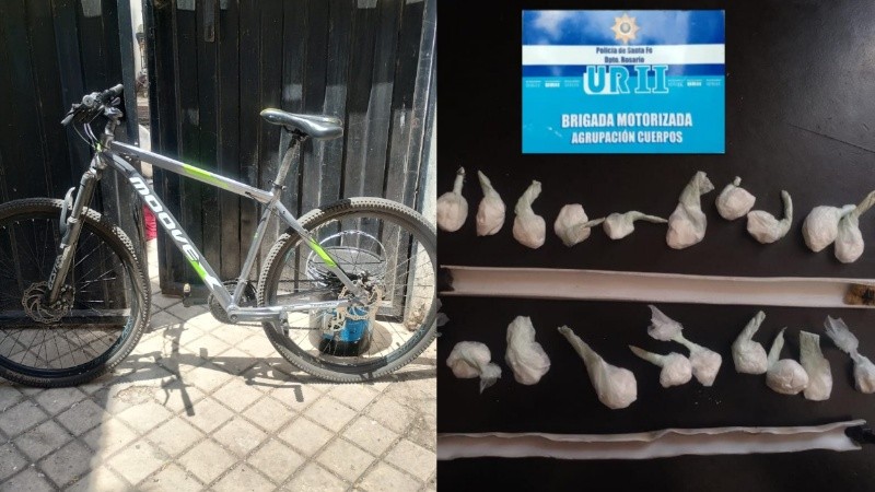 Un joven de 23 años fue aprehendido este lunes en Oroño al 400 con 21 bochitas de cocaína que había escondido en el manubrio de la bicicleta en la que se desplazaba. Los agentes de la brigada motorizada lo trasladaron luego a la comisaría 2ª.