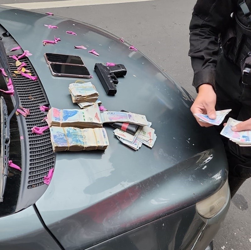 Dos jóvenes de 18 y 28 años quedaron detenidos en el microcentro de Rosario con una réplica de arma de fuego y gran cantidad de dinero en el interior de un auto. Por otra parte, en otro procedimiento policial un hombre fue arrestado en zona oeste con un revolver calibre 22 y un vehículo con pedido de secuestro.