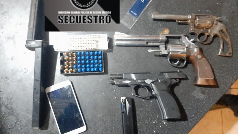 En el auto se secuestraron vainas calibre 9 milímetros. Y minutos después, en Sánchez de Thompson al 100, fue detenido otro sospechoso de 25 años con tres armas de fuego –un revólver calibre .38, otro revólver calibre .357 y una pistola calibre 9 milímetros–, 45 municiones calibre 9 milímetros, 62 municiones calibre 22 y dos municiones calibre 44.