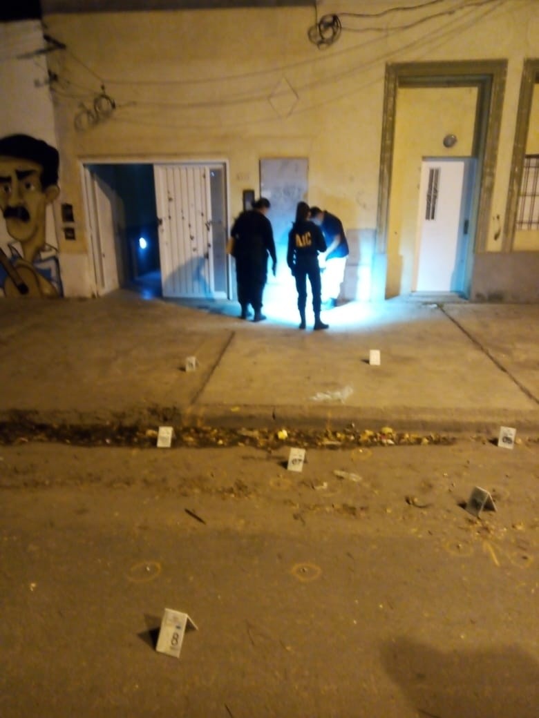 La seguidilla comenzó alrededor de las 19.30 con un ataque sobre el portón de un pasillo de varias viviendas en Necochea al 3500, en barrio Tablada. Los autores no escatimaron plomo y utilizados dos pistolas. Los peritos de criminalística levantaron 11 vainas calibre .40 y otras 20 nueve milímetros, además de proyectiles deformados.