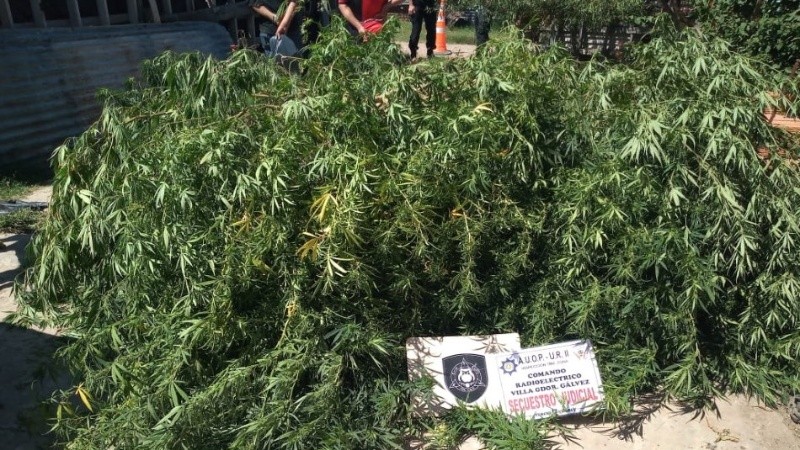 La Policía de Villa Gobernador Gálvez realizó este viernes un operativo en una casa en la que encontraron numerosas plantas de marihuana, además de una réplica de revólver y balas de calibre 9 milímetro y 38.