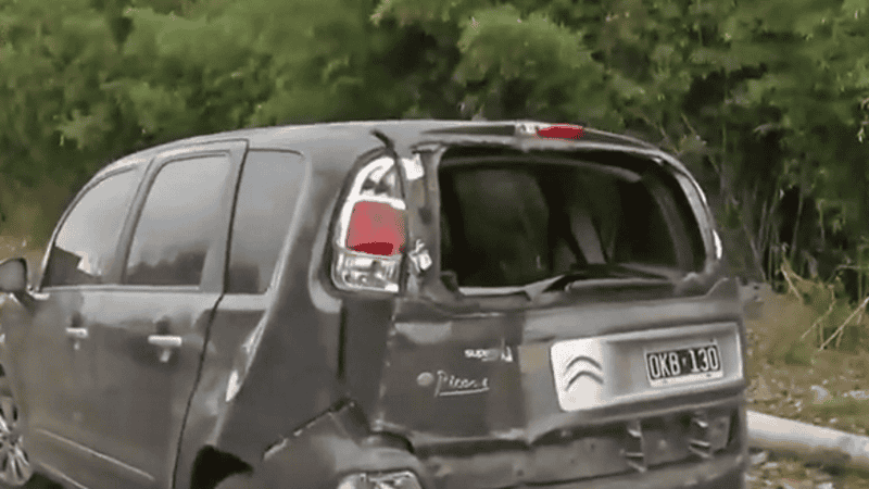 El vehículo estaba chocado y con visibles daños en la parte trasera: luneta, ópticas, guardabarros y demás partes. Agentes policiales tomaron huellas y continúa la investigación de lo ocurrido.