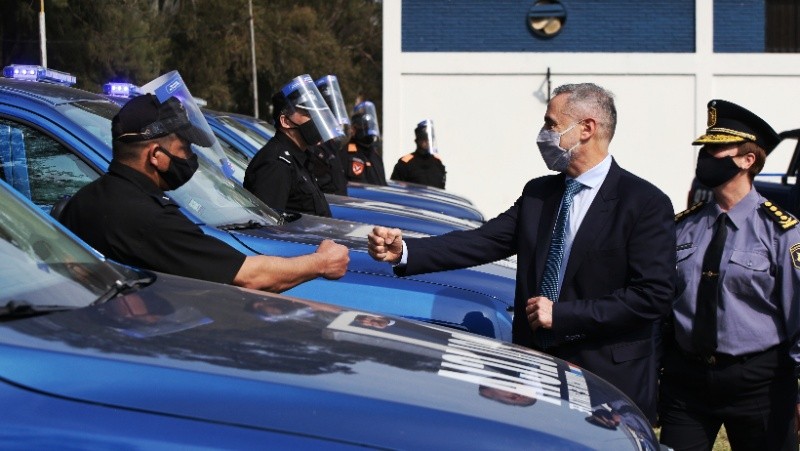 El mensaje de Sain fue brindado durante la exposición de los nuevos móviles que incorporará la Policía de la provincia. A la fuerza de seguridad le pidió "compromiso con el control de la criminalidad, extremadamente violenta en un contexto de elevadísimo nivel de violencia social".