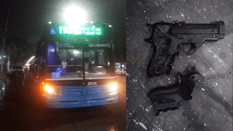 El chofer de 33 años del interno 3034 de la línea 110 relató que una cuadra antes de llegar a Felipe Moré un joven con ropa oscura se subió al colectivo y lo apuntó con un arma de fuego y un cuchillo.