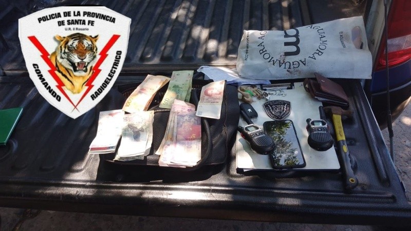 En el vehículo fueron secuestrados dos handies inhibidores, un martillo, una cartera, un celular marca Samsung color negro con funda de silicona y las pertenencias de la mujer asaltada poco antes.