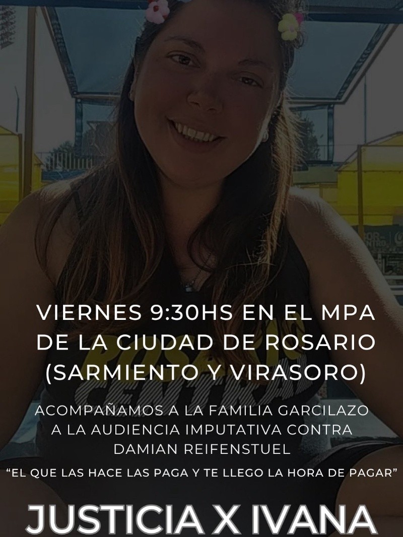 La familia de Ivana Garcilazo convocó a la comunidad a acompañarlos este viernes a las 9.30 en la sede del Ministerio Público de la Acusación (MPA), en Sarmiento y Virasoro, para la audiencia imputativa contra Refenstuel.
