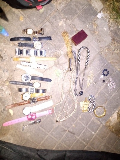 Ya entrada la madrugada del sábado, una patrulla que se encontraba por la zona detecta en Pellegrini y Ayacucho una funda de guitarra al lado de un árbol por lo que se procede a abrirla y en su interior encontraron 15 relojes, 4 pulseras, 3 collares, 3 pares de aros, 5 barras de hierro, 2 destornilladores y guantes.