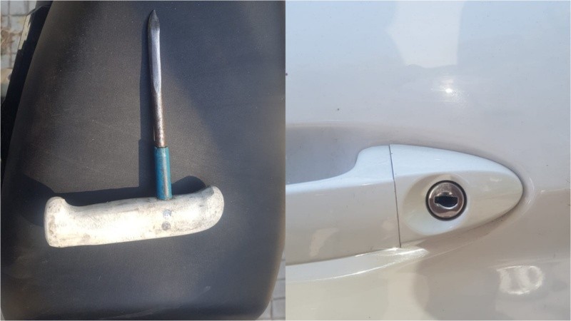En el interior del vehículo, hallaron un lápiz de widia, una herramienta profesional que en el ámbito delictivo se utiliza para romper cristales.