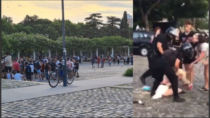 De acuerdo a las primeras informaciones tras la intervención de los agentes de control hubo algunos enfrentamientos y dos personas terminaron detenidas. Sin embargo, también trascendieron videos en redes sociales donde se evidencia que uniformados usaron la fuerza contra algunos jóvenes, en especial contra una chica que se resistía verbalmente al operativo.