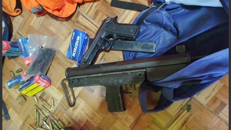 Una pistola Taurus 9 milímetros, una ametralladora FMK3, un fusil de utilería y más de 150 proyectiles calibre 9 milímetros fueron las principales incautaciones del personal de la Agrupación Cuerpos de la Unidad Regional II en el predio situado en Flor de Nácar y Calle 513. Había municiones de un fusil FAL que no fue hallado. También un pasaporte de un hombre que no tenía pedido de captura cuya identidad no trascendió para avanzar en la investigación.