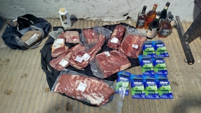 Al revisar la mochila, los efectivos encontraron los cortes de carne, tres botellas de whisky, dos de fernet y una gran cantidad de afeitadoras.