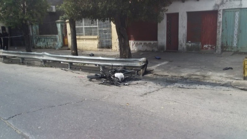 Fuentes policiales informaron que este domingo a las 14.50 personal debió acudir a las inmediaciones de Juan Domingo Perón al 1100 de la vecina localidad por un siniestro vial. Encontraron en el lugar una moto prendida fuego y a pocos metros un hombre muerto.