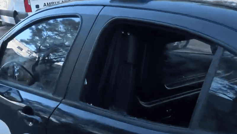 En el centro de salud el equipo de El Tres registró que uno de los patrulleros estacionados tenía rota una de las ventanillas traseras.