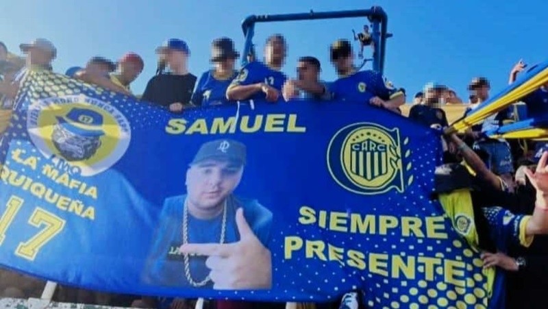 Los dos hinchas que llevaban el trapo vestían una misma camiseta auriazul, que en la espalda decía “Samuel siempre presente”, en alusión a Samuel Medina, alias “Gordo Samu”, el yerno de Ariel Máximo “Guille” Cantero, el líder de Los Monos, que fue asesinado a tiros el pasado 1º de octubre en colectora de Circunvalación Juan Pablo II y José María Fernández, en la zona norte.