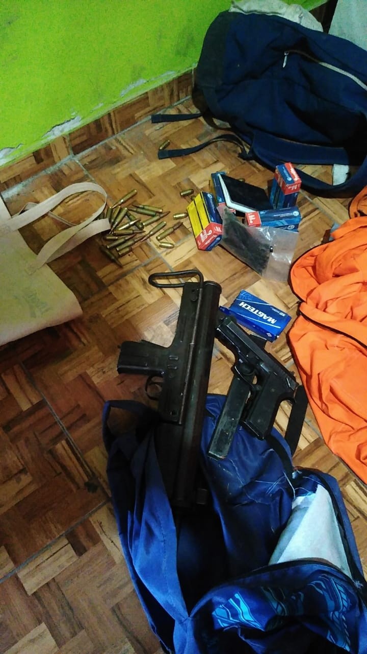 En la vivienda, de la que se cree que los delincuentes desplazaron a una familia que vivía allí, encontraron e incautaron una ametralladora FMK3, pistolas 9mm y un fusil de utilería, además de numerosas municiones. Había también autos y motos, todos con pedido de secuestro por haber sido robados, y algunos con vainas servidas en su interior.