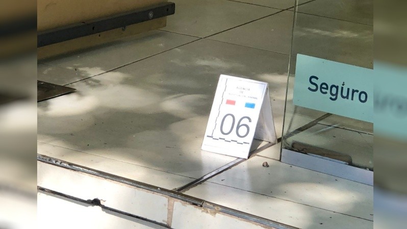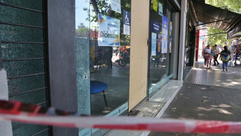 Minutos después se detectó que una tienda de ropa que está frente a Crédito Argentino también fue baleada. Está frente a la financiera, por lo que se sospecha que los atacantes tiraron en ambas direcciones.