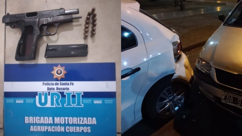 Una persecución policial en la zona norte de Rosario culminó con un joven de 25 años y un menor de 17 detenidos. Tras intentar escapar de los oficiales, impactaron contra dos autos y hasta con el patrullero que los seguía en la intersección de las calles Superí y Rondeau. Se movían en un vehículo con pedido de captura y se les secuestró un arma de fuego.