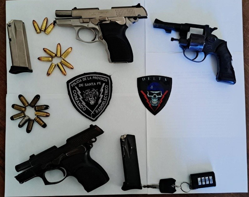 Los agentes lo perdieron de vista cuando escapó por unos pasillos. Pero al requisar el bolso, encontraron dos pistolas –calibre 9 milímetros y .40 S&W–, un revólver .22, dos balanzas y siete panes de marihuana del tipo comúnmente conocido como prensado paraguayo.
