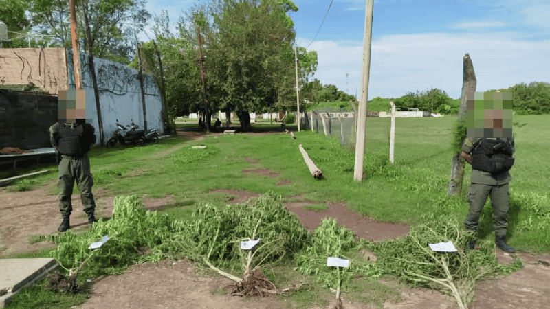 En otro punto de la ciudad, personal de Gendarmería decomisó plantas de marihuana en un domicilio de barrio Parque Casas.