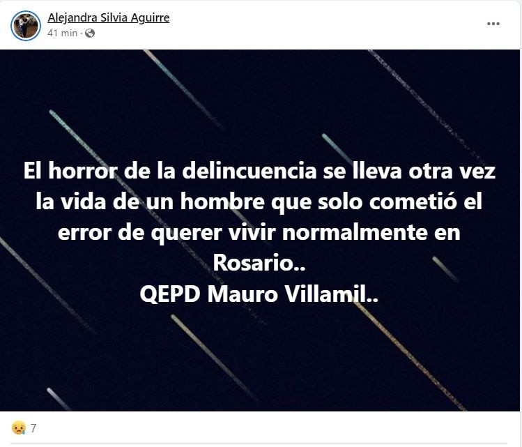 “Estaba comprando las cosas para la ensalada y lamentablemente pasó lo que viene pasando en esta ciudad de mierda donde van y te balean. Matan a cualquiera, no les importa nada”, se descargó.