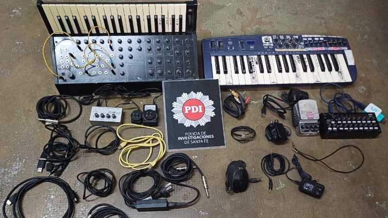 Los elementos secuestrados fueron un secuenciador, una pedalera multiefectos para guitarra, un mezclador de línea, un teclado controlador MIDI, un sintetizador, cables y otros accesorios.