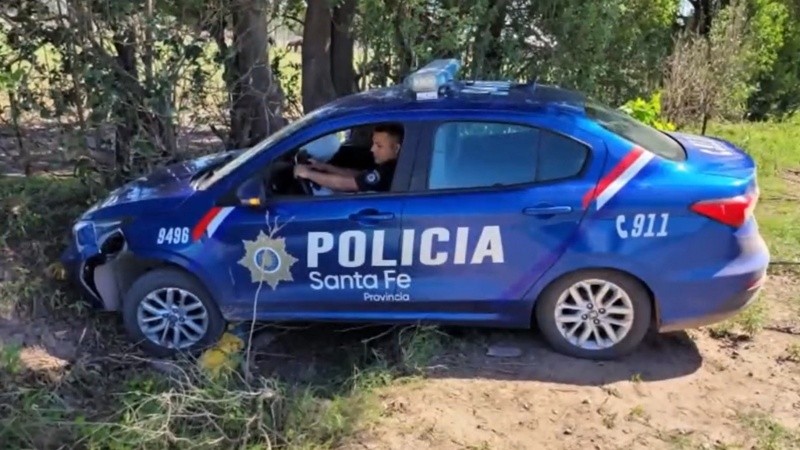La persecución de los delincuentes terminó en Soldini, con un patrulero en una zanja. Dos oficiales que resultaron heridos fueron derivados al sanatorio Laprida con fuertes traumatismos.