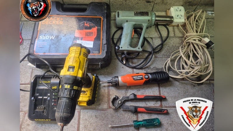 Los uniformados incautaron una sierra, un atornillador inalámbrico, un taladro percutor inalámbrico, una pistola de calor, un alargue, una pinza, un destornillador, dos cuchillos, una tijera y dos celulares. Todos los objetos fueron reconocidos como propios por la dueña del comercio céntrico.