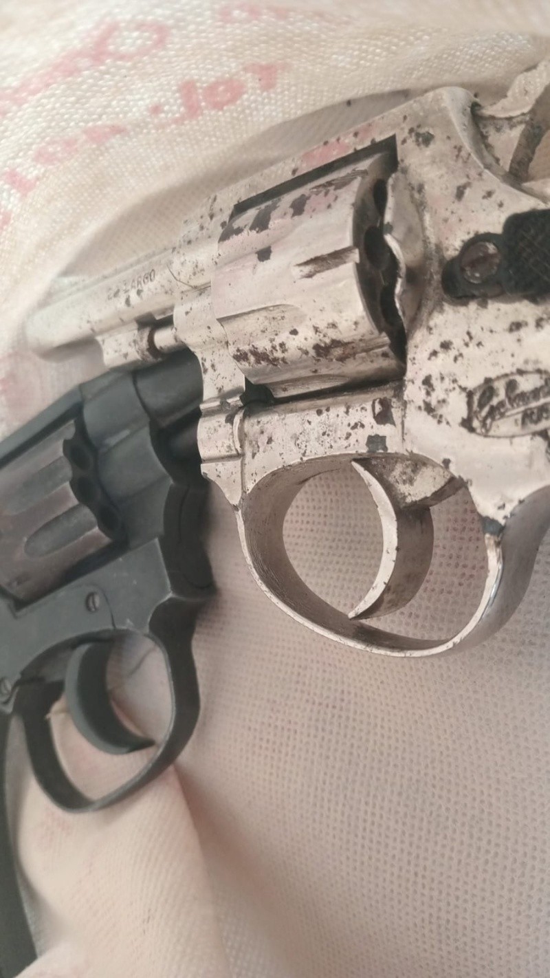 Los agentes también incautaron tres armas de fuego, una réplica de una pistola, cartuchos y varios celulares.