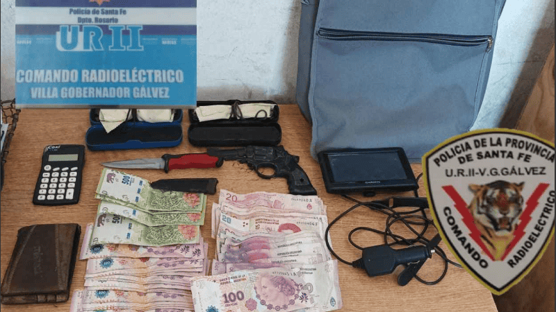 Después de haber tomado testimonios en el lugar del choque, personal policial aprehendió a la sospechosa en la zona rural que está detrás del cementerio de Villa Gobernador Gálvez con la réplica del arma, 3.500 pesos y un cuchillo.