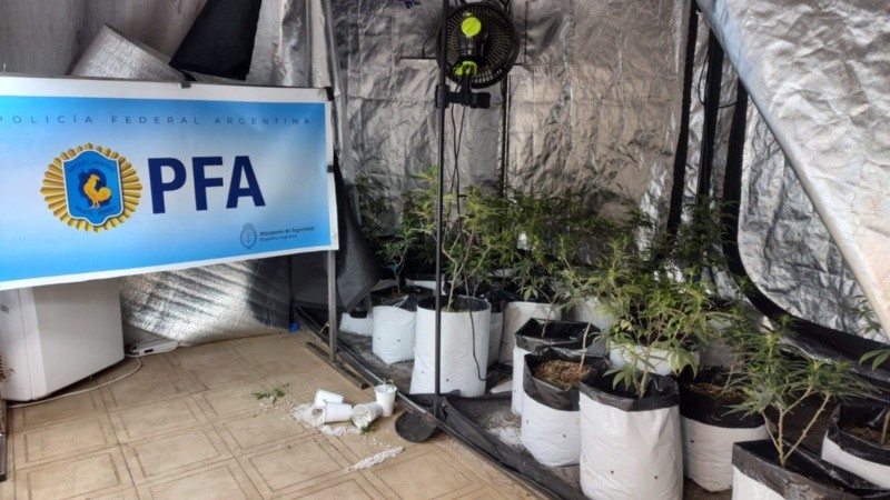 En el marco de un expediente que investiga la comercialización de marihuana de alta calidad, personal de la Policía Federal desbarató un sofisticado indoor (cultivo de interior) montado en la localidad de Roldán y secuestró decenas de plantas y cogollos. Hay un detenido.