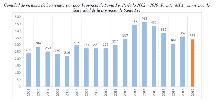 Ese organismo judicial publicó esta semana la cifra total de homicidios en 2019 en toda la provincia: fueron 337. Mientras que los asesinados en el departamento Rosario fueron 168. Según dijeron desde el MPA a Rosario3, los números surgen de un informe preliminar y los datos finales que elabora el área de política criminal, con el desagregado mes por mes, estarán listos para marzo.
