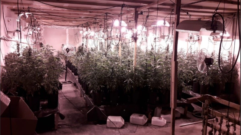 Los dos principales allanamientos fueron en un galpón en de Moreno 3700 en Rosario, con un mega indoor de cannabis, y otra plantación en la zona rural de Ibarlucea.