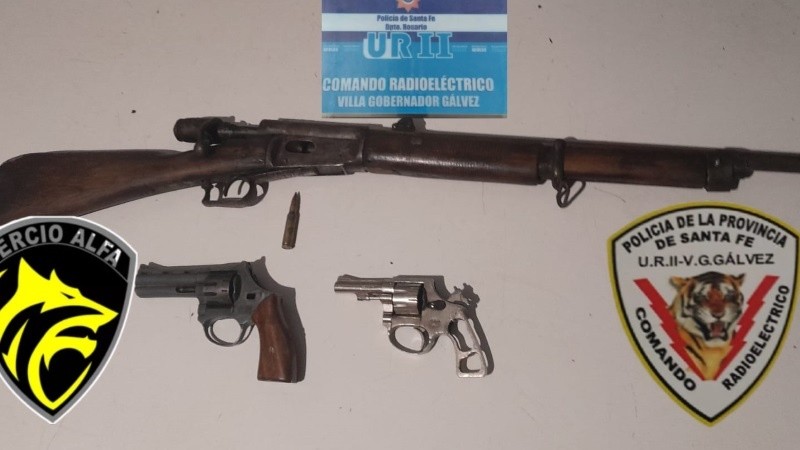 El comando radioeléctrico de Villa Gobernador Gálvez secuestró varias armas de fuego en la noche de este martes en dos operativos que tuvieron lugar a dos cuadras de distancia. No hubo detenidos.