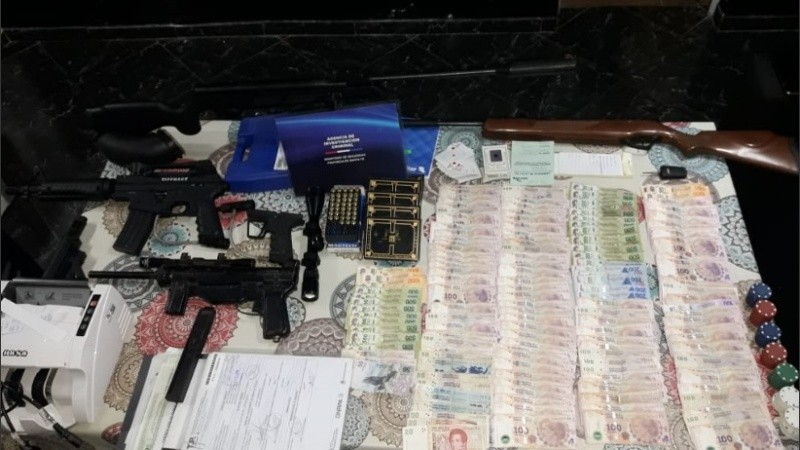 La Agencia de Investigación Criminal (AIC) y la Tropa de Operaciones Especiales (TOE) detuvieron a once personas en un casino clandestino ubicado en Felipe Moré entre Gaboto y Garay, en la zona oeste de Rosario. Se incautaron municiones de distintos calibres, dinero, una máquina de contar billetes, elementos electrónicos, fijas, una pistola ametralladora, una carabina y un rifle de aire comprimido.