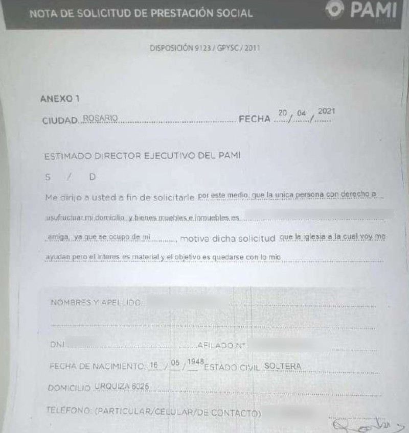 La mujer le contestó: “Bueno, si tenes datos de la vieja pasámelos, que si es del Pami yo arreglo las cosas. Hago un comodato por una asistente social de Pami”.