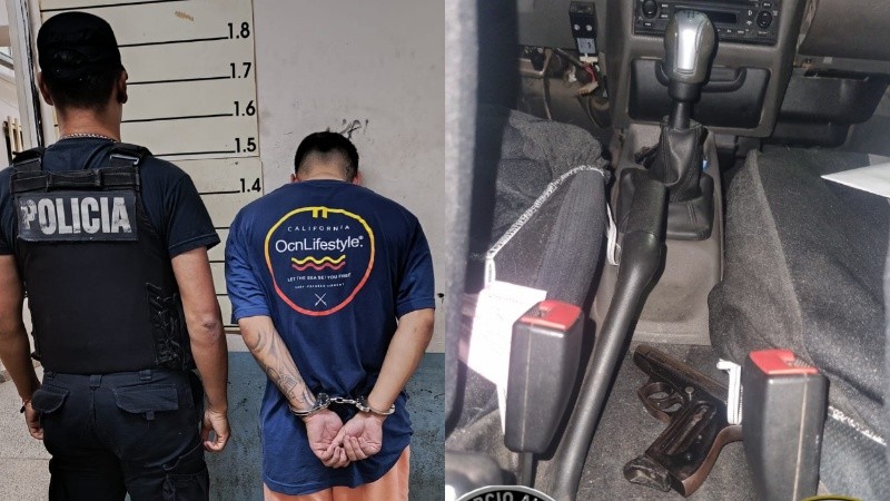 Un auto de similares características fue visualizado en inmediaciones de Soldado Aguirre y Riccheri y fue seguido hasta la Ruta 22, donde lograron que el vehículo detenga la marcha. En la requisa al rodado se incautó una Bersa calibre 22 que estaba entre los asientos delanteros, y el teléfono de su conductor Agustín Daniel A., quien fue trasladado a la comisaría 26ª.