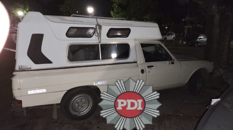 Al arribar, había 10 personas cargando cereal en bolsas arpilleras y en dos rodados, un camión Mercedes Benz 1114 con acoplado y una pick up marca Peugeot modelo 504.